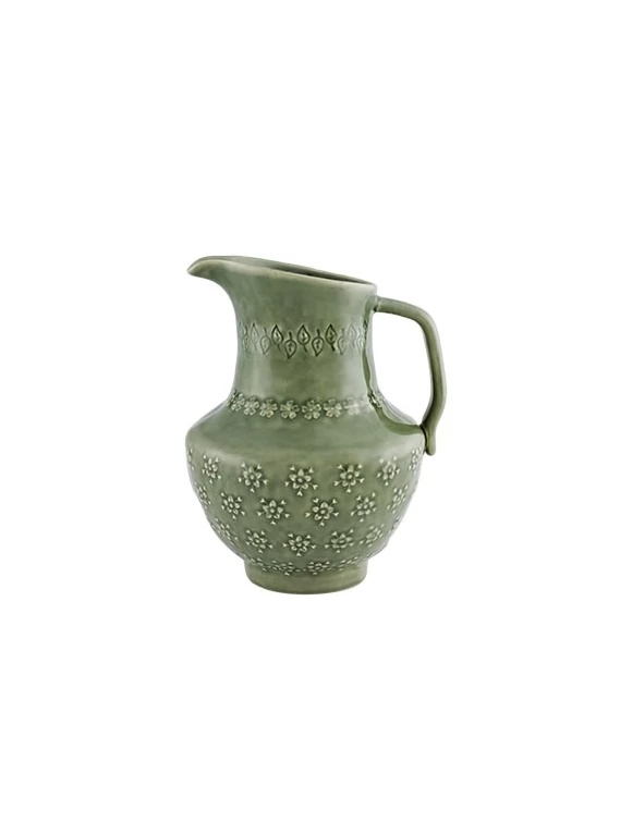 De Bordallo Flora karaf is gemaakt van geglazuurd aardewerk in een groene kleur. De karaf heeft een diameter van 15,4 cm en een hoogte van 20,8 cm. Gebruik de karaf voor het serveren van water of andere dranken.