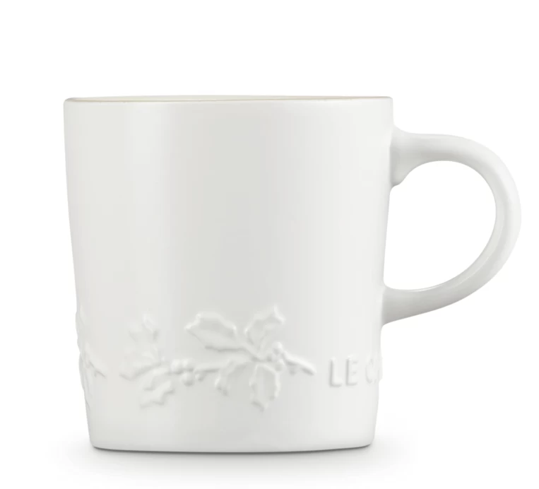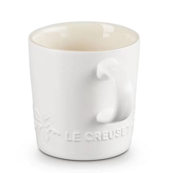 De Holly koffiemok van Le Creuset is gemaakt van geglazuurd aardewerk, uitgevoerd in katoenwit en heeft een satijnglans afwerking. Met een inhoud van 200 ml is de beker geschikt voor koffie en warme chocolademelk. Aan de buitenzijde is de mok voorzien van hulstbladeren in reliëf. Daarmee past de Holly Collectie uitstekend in het winterseizoen.Â