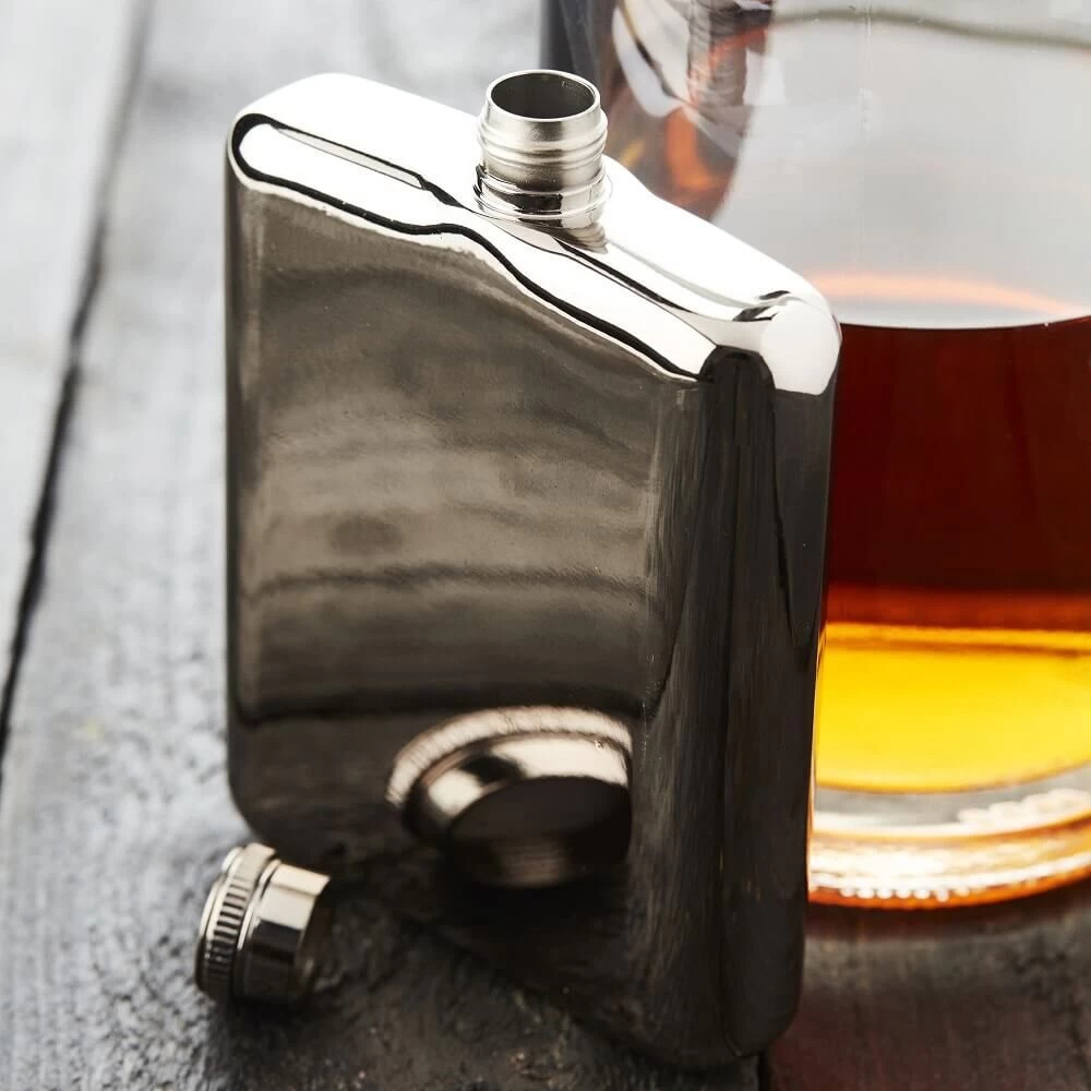 De heupfles van Point-Virgule heeft een inhoud van 175 ml en kan worden gebruik voor het meenemen van (sterke) drank. De metallic-zwart gekleurde fles is gemaakt van roestvrij staal en voorzien van een draaidop.Â