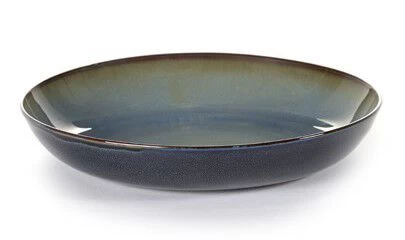 Het Serax Terres de Rêves pastabord heeft een diameter van 23,5 cm en is 4,5 cm hoog. Het van stoneware gemaakte bord heeft een rookblauw, donker blauw gemêleerd glazuur.