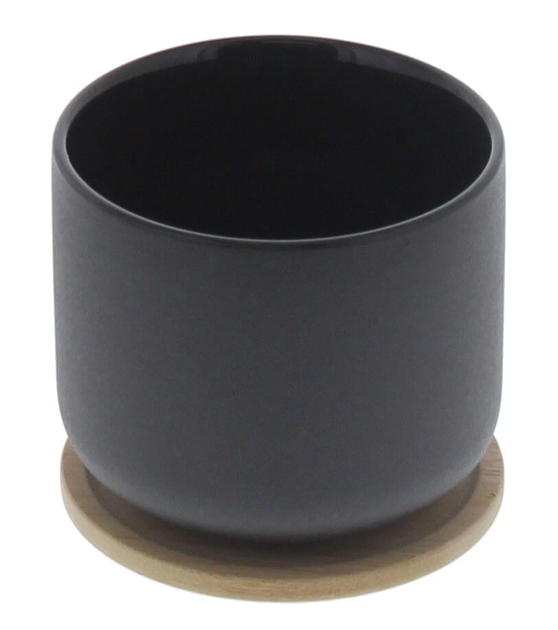 De Stelton Theo kop is gemaakt van zwart steengoed en heeft een onderzetter van bamboe. De kop heeft een diameter van 9 cm en is 9 cm hoog en groot genoeg voor 200 ml koffie of thee.